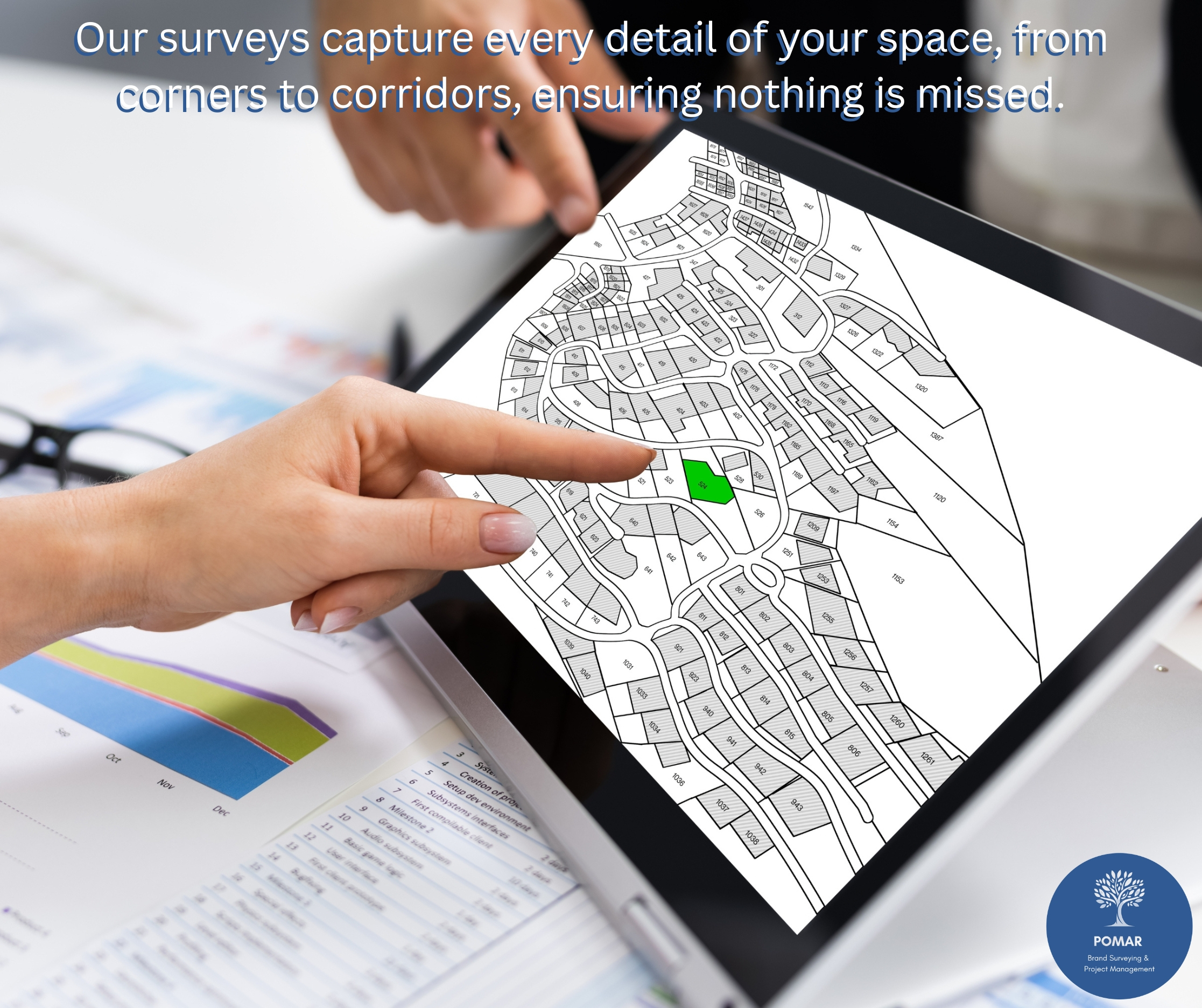 In partnership with Pomar, our trusted survey specialists, we provide accurate surveys which capture every detail of your space, from corners to corridors, ensuring nothing is missed.